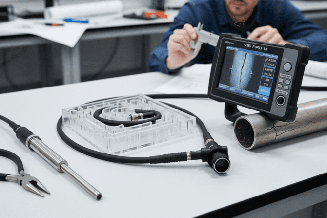 Измерительный видеоэндоскоп ВИС ПРО 10.1 предназначен для обнаружения и измерения дефектов внутренней поверхности механизмов и оборудования.